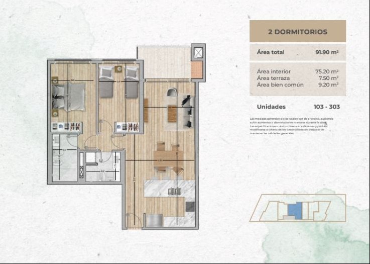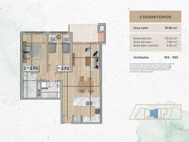 2 DORM2 BAÑOS92 m² SUP.75 m² EDIF.