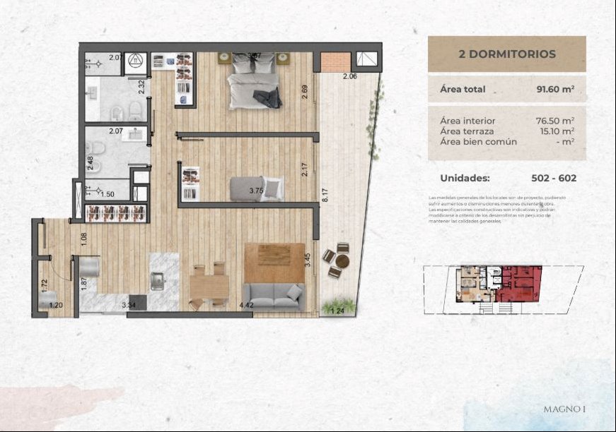 2 DORM2 BAÑOS91 m² SUP.76 m² EDIF.