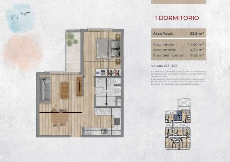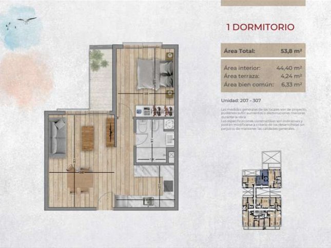 1 DORM1 BAÑO55 m² SUP.44 m² EDIF.