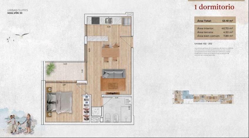 El edificio está distribuido en monoambientes, apartamentos de 1 dormitorio y 2 dormitorios, ofreciendo opciones para distintos estilos de vida y necesidades.