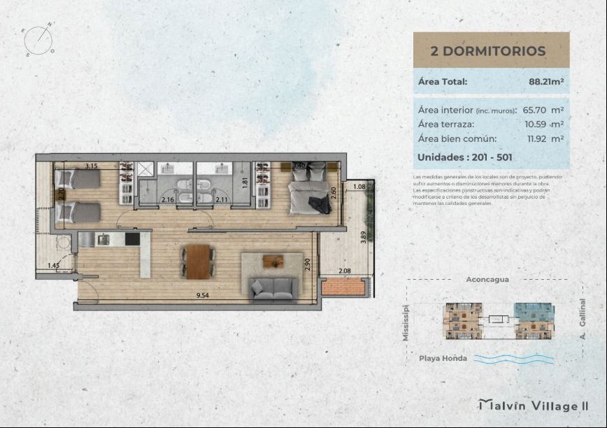 2 DORM2 BAÑOS88 m² SUP.65 m² EDIF.