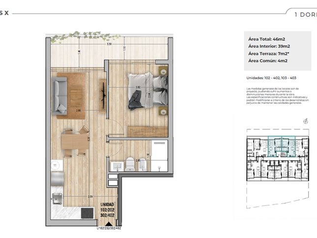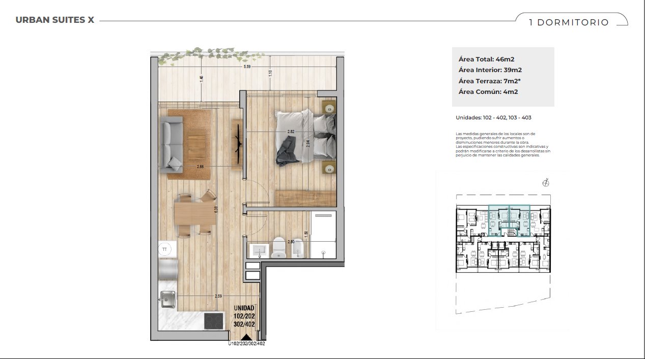 1 DORM1 BAÑO50 m² SUP.39 m² EDIF.