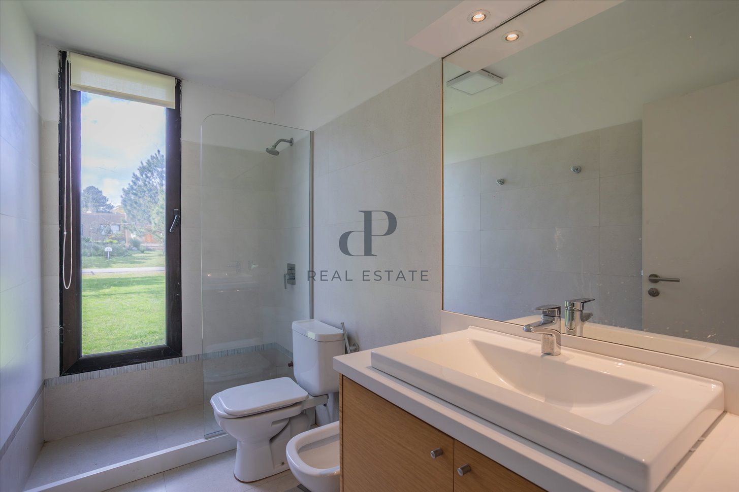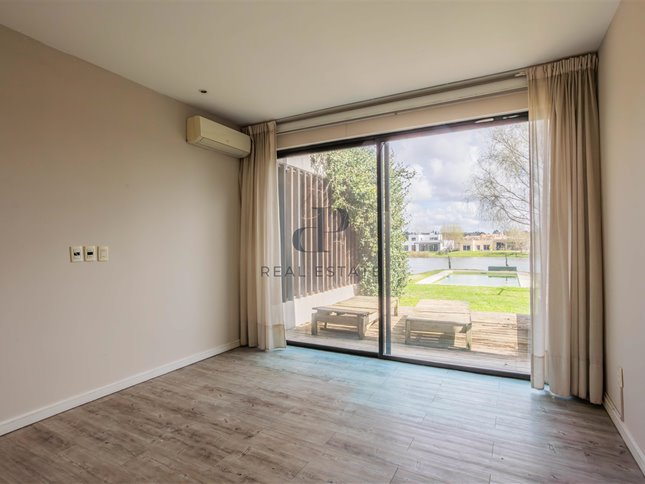 La zona íntima se organiza mediante un hall de distribución naturalmente iluminado. La suite principal se destaca por su terraza privada con vistas al lago, amplio vestidor y baño en suite. Dos dormitorios adicionales comparten un baño completo.