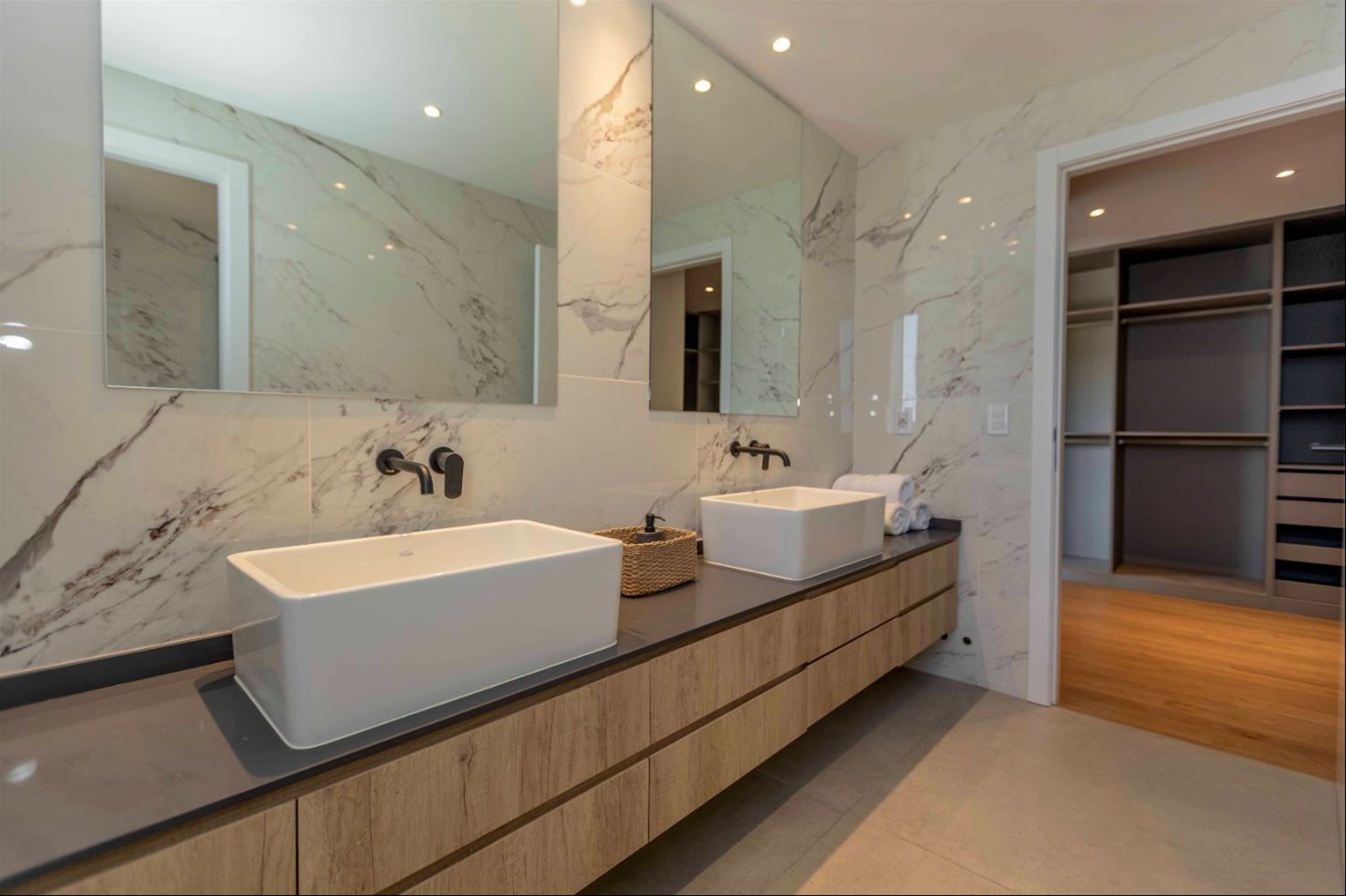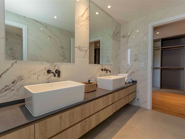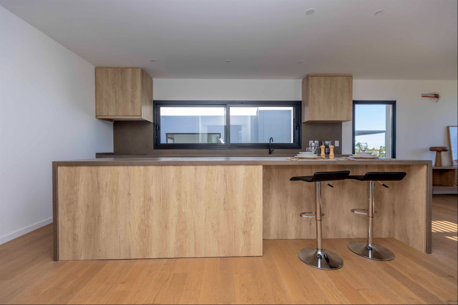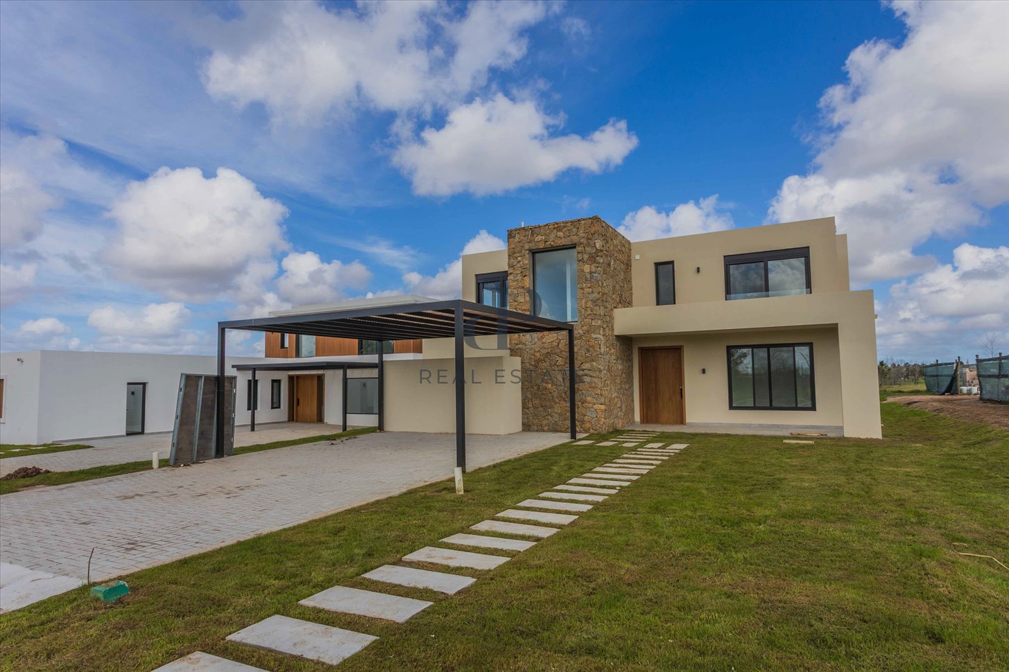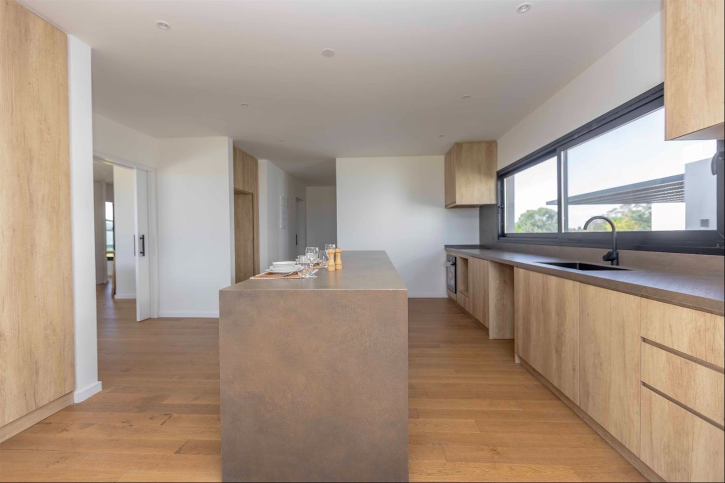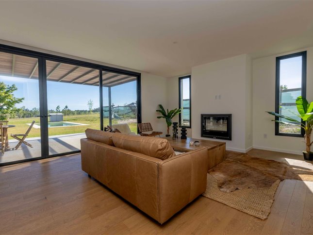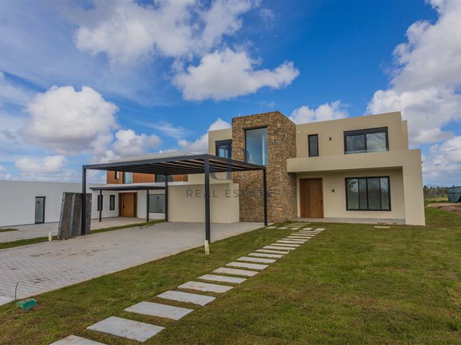 Distribuida en dos niveles, esta propiedad separa con claridad las áreas sociales de las privadas, logrando una excelente optimización del terreno. Su arquitectura moderna combina piedra, madera y pintura texturada, aportando calidez y carácter en cada espacio.