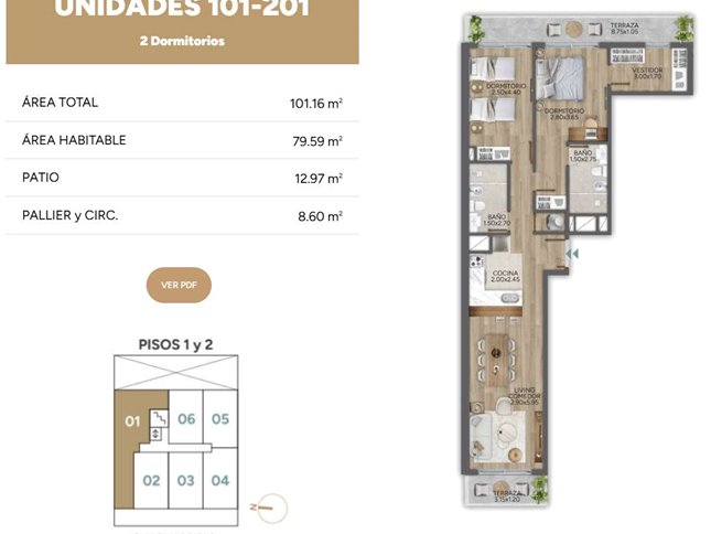 * Las superficies de los apartamentos incluyen muros divisorios hasta su eje, ductos, terrazas, balcones, prorrateo de área común, circulación vertical exclusivamente de planta.
