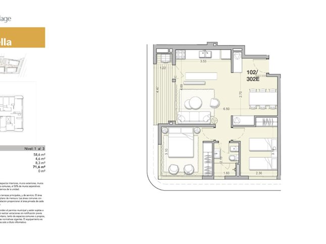 * Las superficies de los apartamentos incluyen muros divisorios hasta su eje, ductos, terrazas, balcones, prorrateo de área común, circulación vertical exclusivamente de planta.