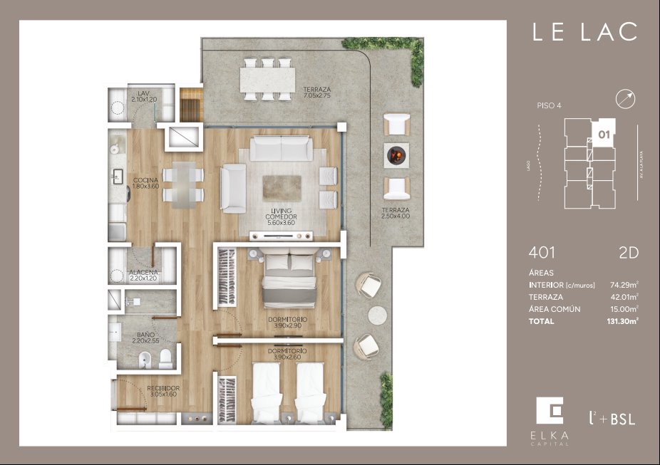 Ubicado en Av. a la Playa, frente al Parque Roosevelt y a pasos de Av. de las Américas, Camino Carrasco y el Aeropuerto, LE LAC ofrece apartamentos de 1, 2 y 3 dormitorios en un edificio boutique rodeado de naturaleza, entre el lago y el bosque.