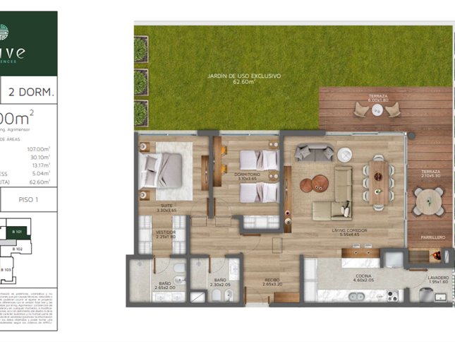 2 DORM2 BAÑOS217 m² SUP.107 m² EDIF.1 Garaje21.000 Expensas