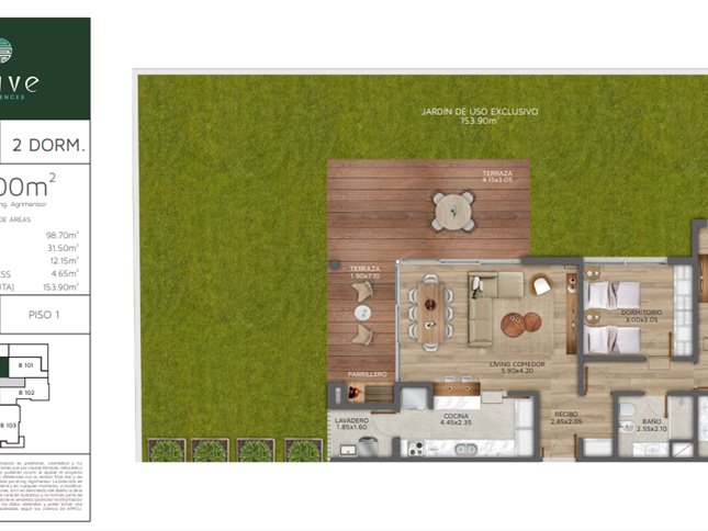 * Las superficies de los apartamentos incluyen muros divisorios hasta su eje, ductos, terrazas, balcones, prorrateo de área común, circulación vertical exclusivamente de planta.