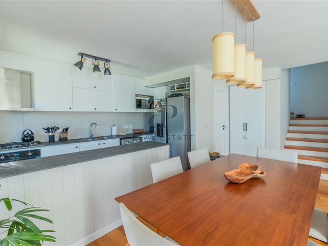 PB: Living comedor con estufa a leña. Cocina semi-integrada, equipada con campana, horno y anafe. Baño social.