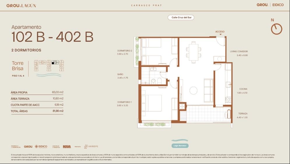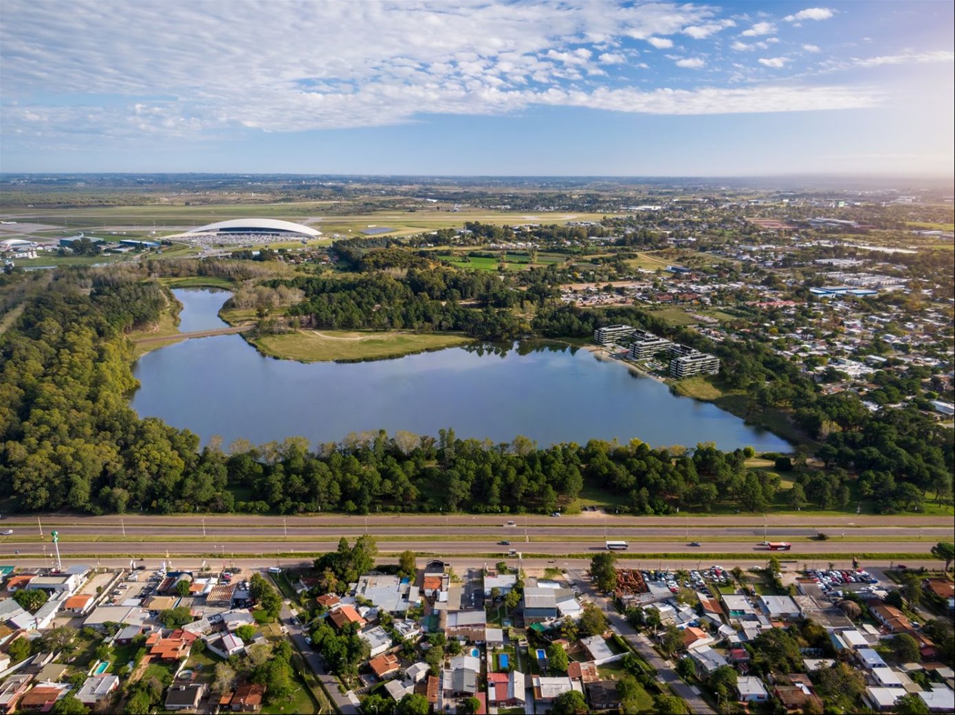 GROU Lagún se desarrolla a orillas del lago Aerosur, en el Distrito Carrasco Prat, una zona en pleno crecimiento al este de Montevideo. El proyecto incluye 5 torres residenciales en un predio de 11.000 m², con unidades de 1, 2 y 3 dormitorios, amplios espacios comunes y un entorno natural excepcional, a minutos del Parque Roosevelt, el aeropuerto y la Rambla Costanera.