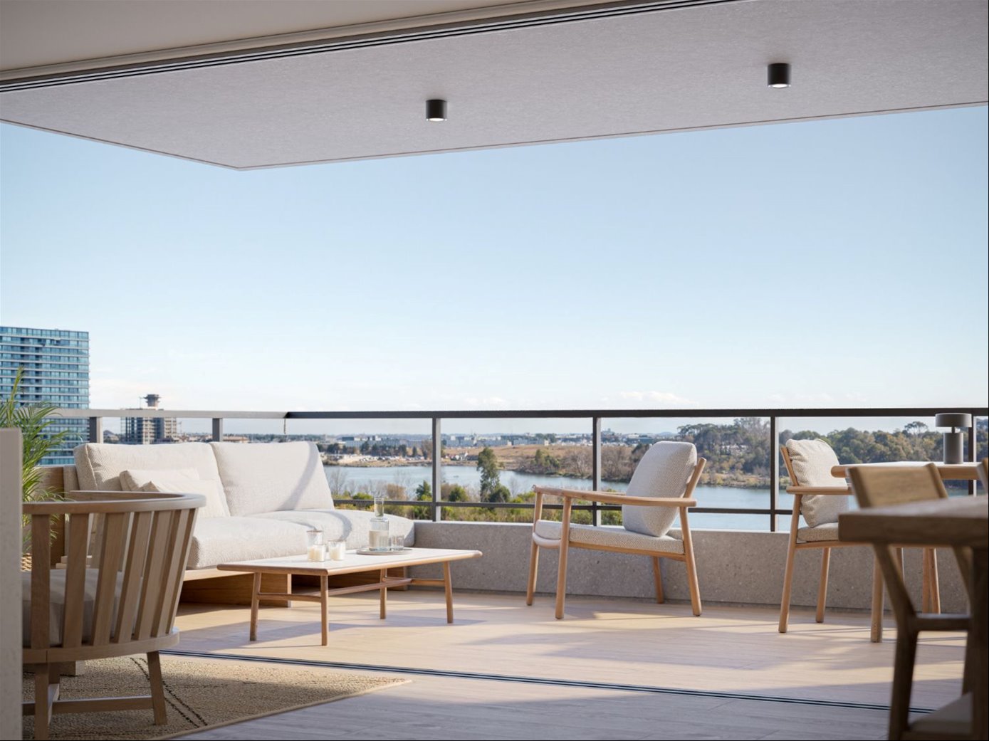 El proyecto incluye tres torres con 123 apartamentos de 1, 2 y 3 dormitorios y 151 cocheras, en un entorno pensado para disfrutar el lago y actividades como kayak o paddleboard.