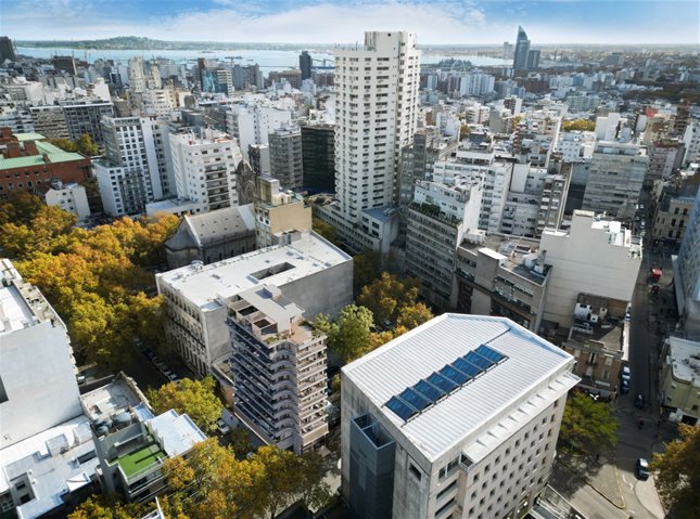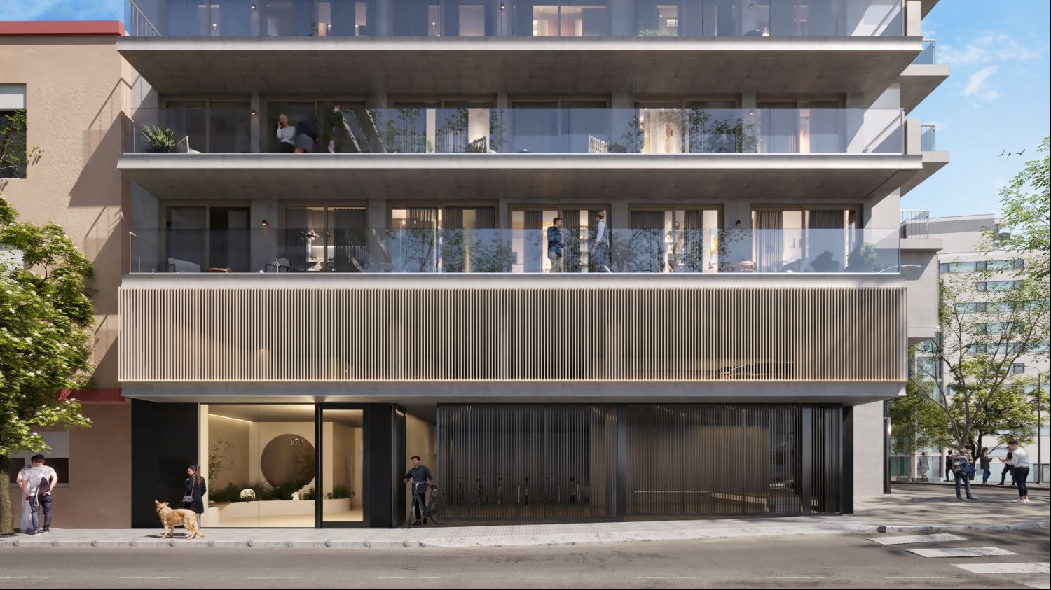 El edificio incorpora además bike parking, laundry, tender y cocheras con previsión para cargadores eléctricos.