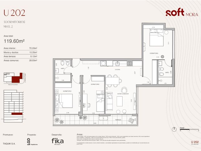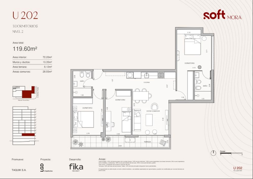 SOFT MORA se desarrolla en 12 niveles y cuenta con 34 unidades de 1, 2 y 3 dormitorios.