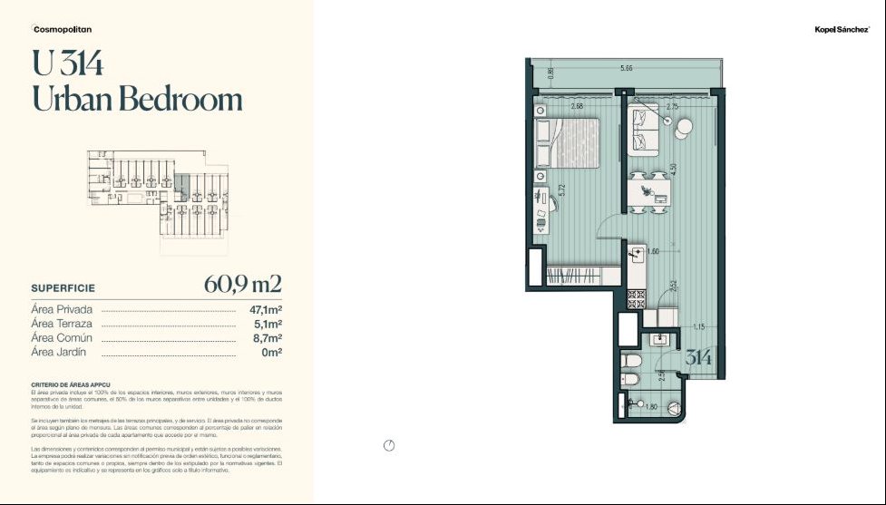 * Las superficies de los apartamentos incluyen muros divisorios hasta su eje, ductos, terrazas, balcones, prorrateo de área común, circulación vertical exclusivamente de planta.