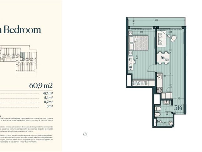 1 DORM1 BAÑO61 m² SUP.47 m² EDIF.1 Garaje
