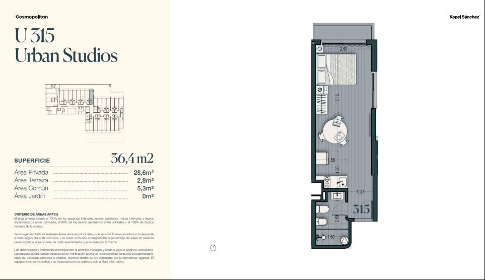 * Las superficies de los apartamentos incluyen muros divisorios hasta su eje, ductos, terrazas, balcones, prorrateo de área común, circulación vertical exclusivamente de planta.