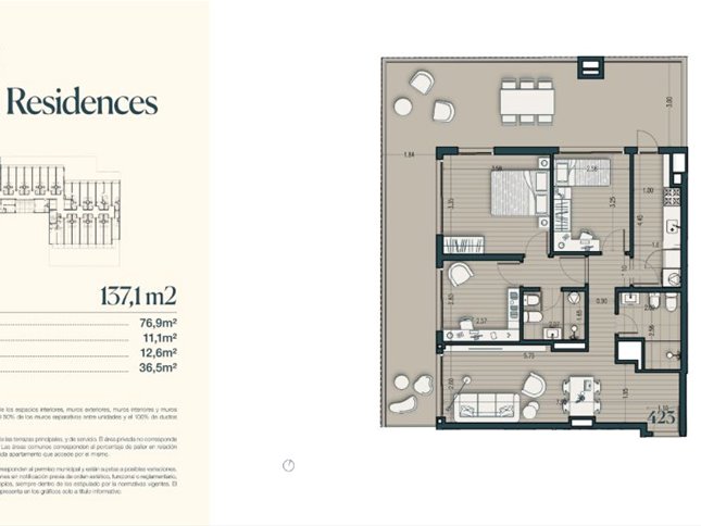 * Las superficies de los apartamentos incluyen muros divisorios hasta su eje, ductos, terrazas, balcones, prorrateo de área común, circulación vertical exclusivamente de planta.