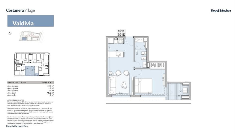 Apartamento en alquiler en Barra de Carrasco, dentro del complejo Costanera Village, situado sobre la Rambla Costanera. Esta unidad a estrenar cuenta con orientación este y dispone de un diseño funcional, conformado por living-comedor y terraza. La cocina está integrada y equipada con horno, anafe, campana, mobiliario bajo mesada y aéreos.