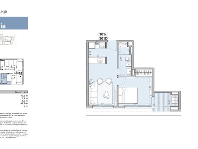 1 DORM1 BAÑO48 m² SUP.40 m² EDIF.5.500 Expensas