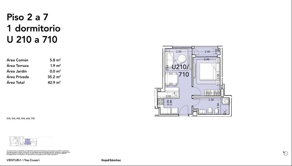 1 DORM1 BAÑO43 m² SUP.35 m² EDIF.1 Garaje