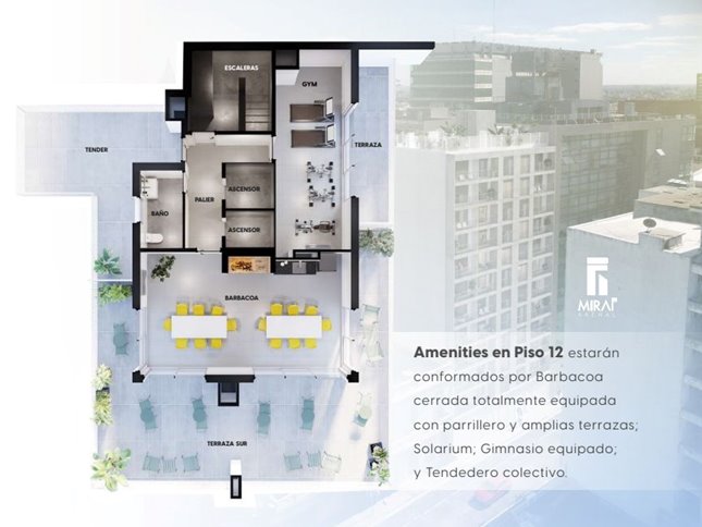 * Las superficies de los apartamentos incluyen muros divisorios hasta su eje, ductos, terrazas, balcones, prorrateo de área común, circulación vertical exclusivamente de planta.