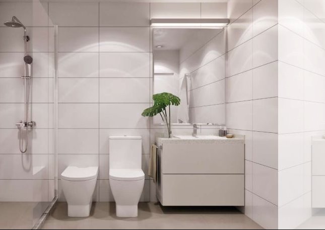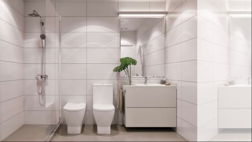 Edificio de 44 apartamentos de 1 y 2 dormitorios, todos con terraza o patio, doble orientación este-oeste y vistas despejadas.