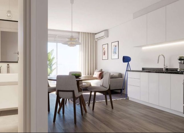 Edificio de 44 apartamentos de 1 y 2 dormitorios, todos con terraza o patio, doble orientación este-oeste y vistas despejadas.