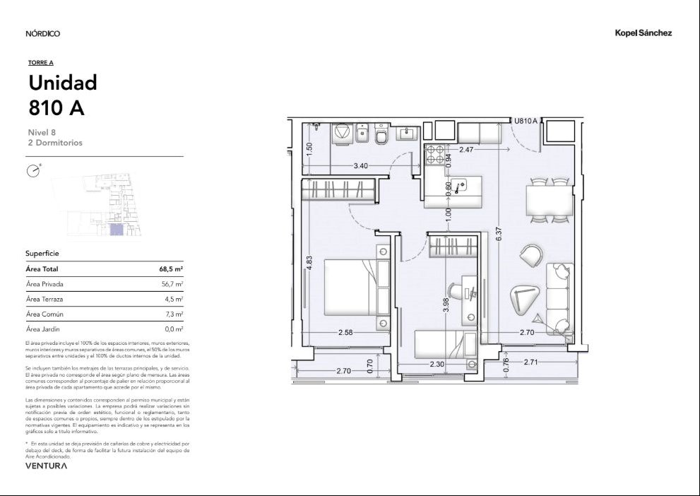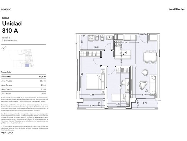 * Las superficies de los apartamentos incluyen muros divisorios hasta su eje, ductos, terrazas, balcones, prorrateo de área común, circulación vertical exclusivamente de planta.