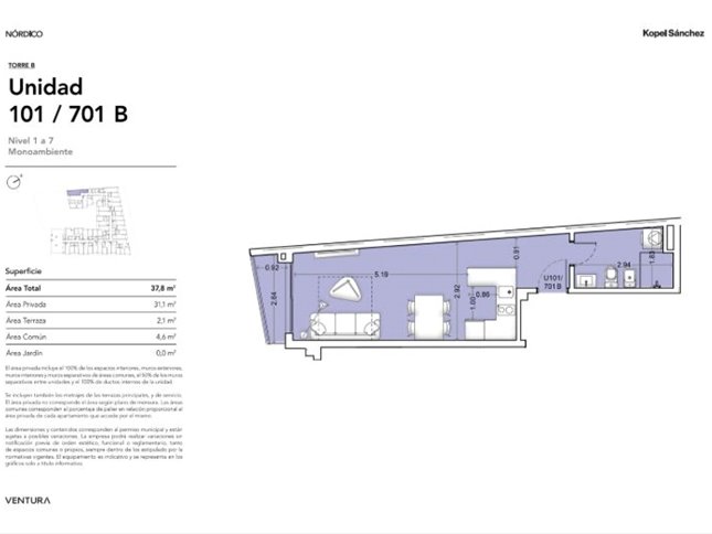 * Las superficies de los apartamentos incluyen muros divisorios hasta su eje, ductos, terrazas, balcones, prorrateo de área común, circulación vertical exclusivamente de planta.
