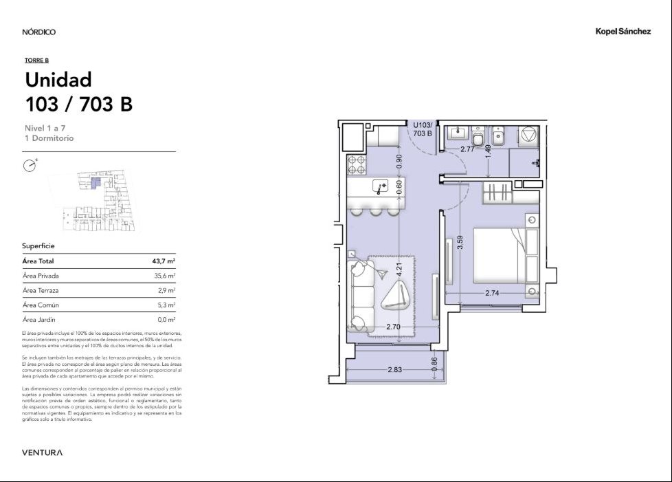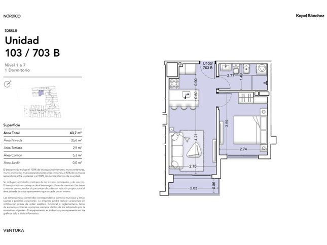 1 DORM1 BAÑO43 m² SUP.35 m² EDIF.1 Garaje