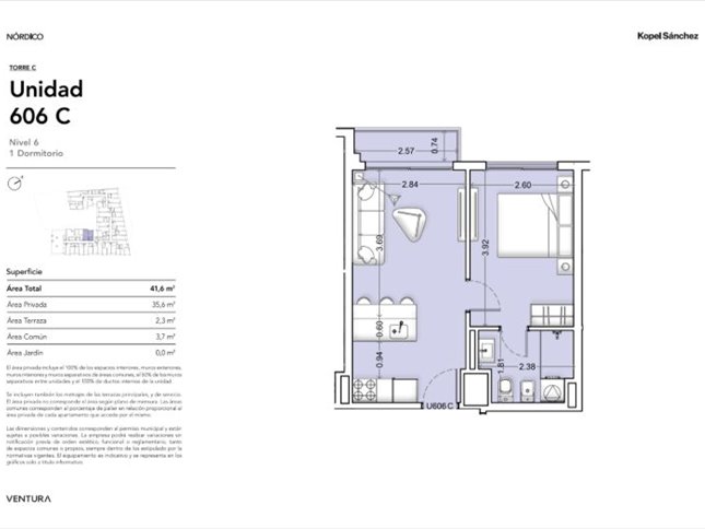 * Las superficies de los apartamentos incluyen muros divisorios hasta su eje, ductos, terrazas, balcones, prorrateo de área común, circulación vertical exclusivamente de planta.