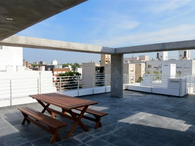 Posee un amplio balcón con acceso tanto desde el living-comedor como desde el dormitorio, generando una conexión fluida con el exterior.