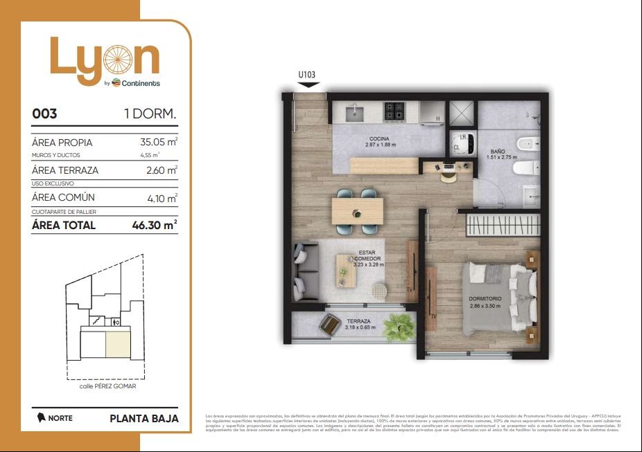 1 DORM1 BAÑO46 m² SUP.35 m² EDIF.1 Garaje