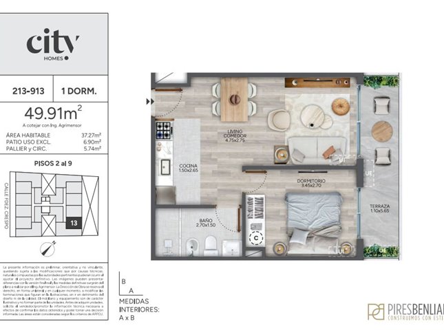 1 DORM1 BAÑO49 m² SUP.37 m² EDIF.1 Garaje