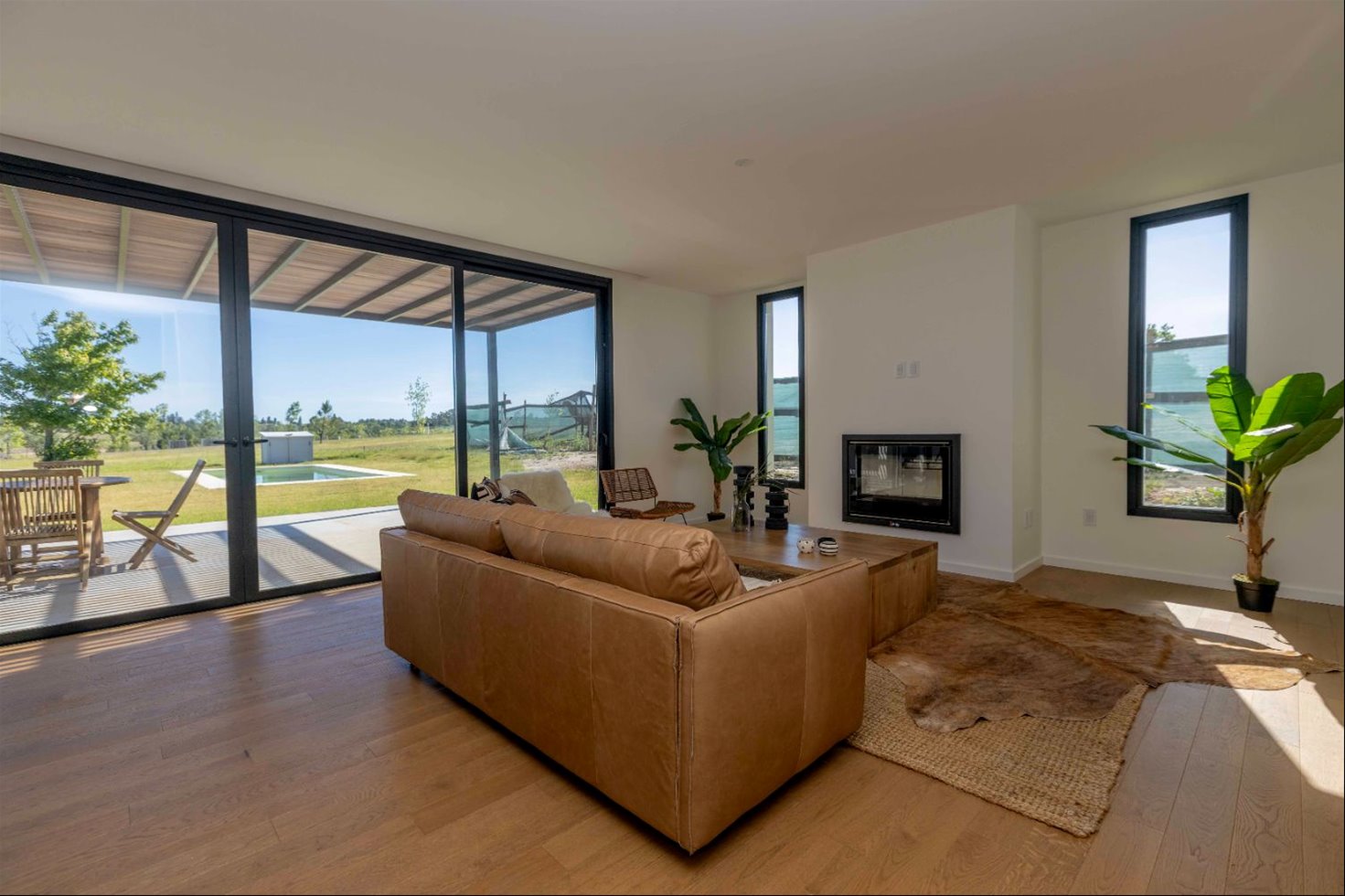 Distribuida en dos niveles, esta propiedad separa con claridad las áreas sociales de las privadas, logrando una excelente optimización del terreno. Su arquitectura moderna combina piedra, madera y pintura texturada, aportando calidez y carácter en cada espacio.