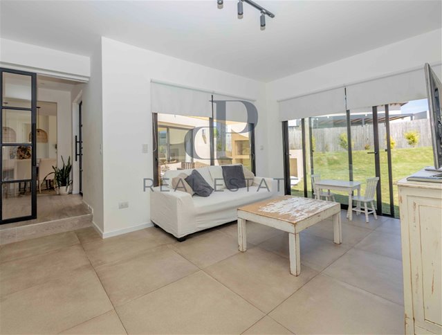 Propiedad desarrollada en una planta sobre un terreno en esquina de 1.016 m², ubicada cerca del acceso principal del barrio. Combina amplitud, diseño contemporáneo y una integración natural con el entorno, logrando espacios cálidos, funcionales y muy disfrutables.