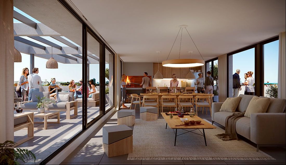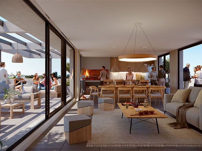 Amenities: barbacoa, gimnasio, lavandería, piscina, SUM, co-work, guardabicis, solárium y parrillero de uso común.