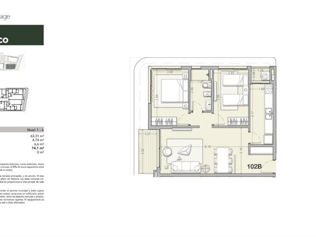 2 DORM1 BAÑO74 m² SUP.63 m² EDIF.1 Garaje6.500 Expensas