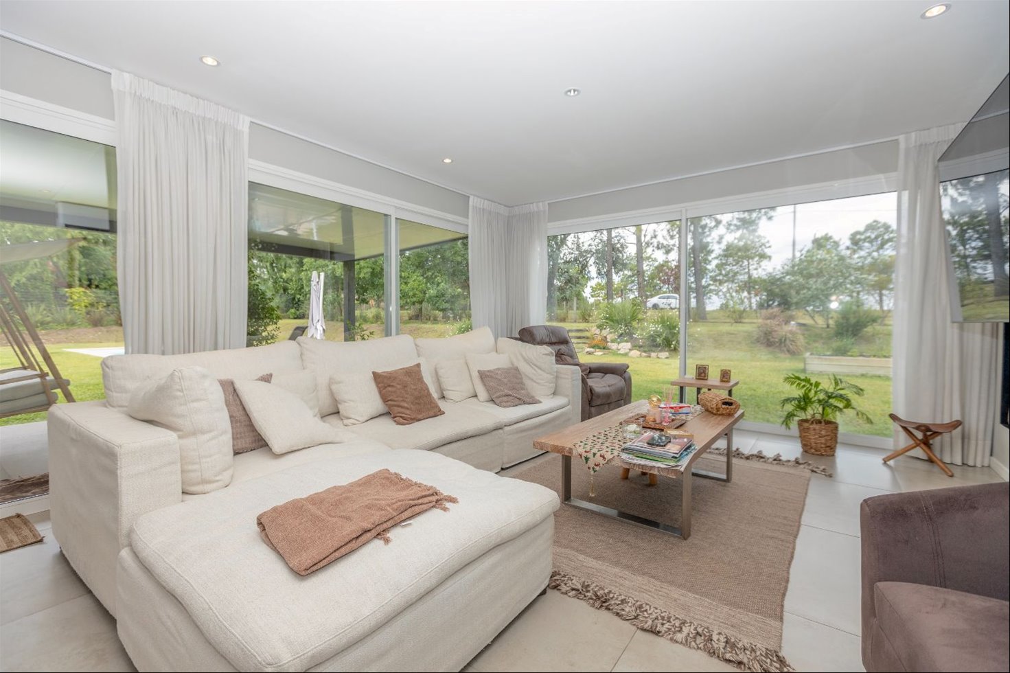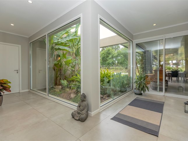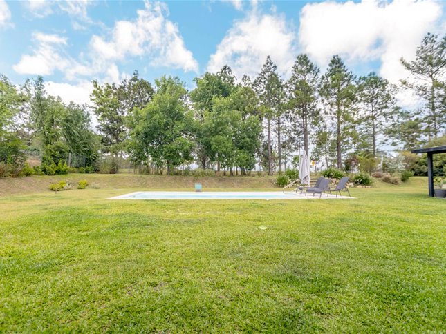 Conjunto de dos casas conectadas, con jardín y piscina en común, sobre lote de 2.300 m² y 525 m² edificados (incluye pérgolas).