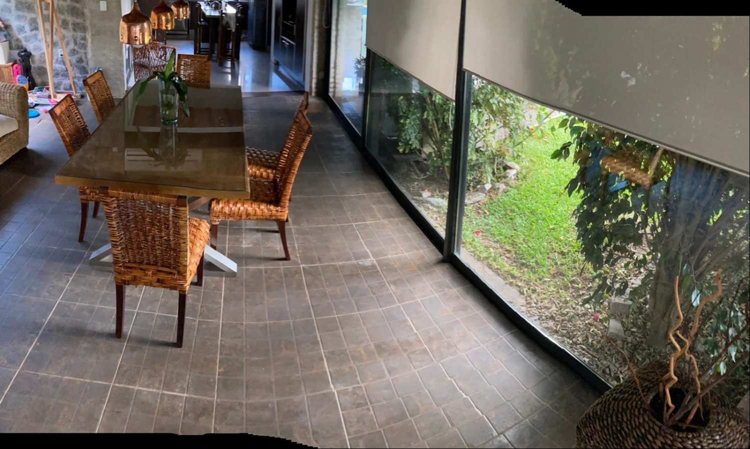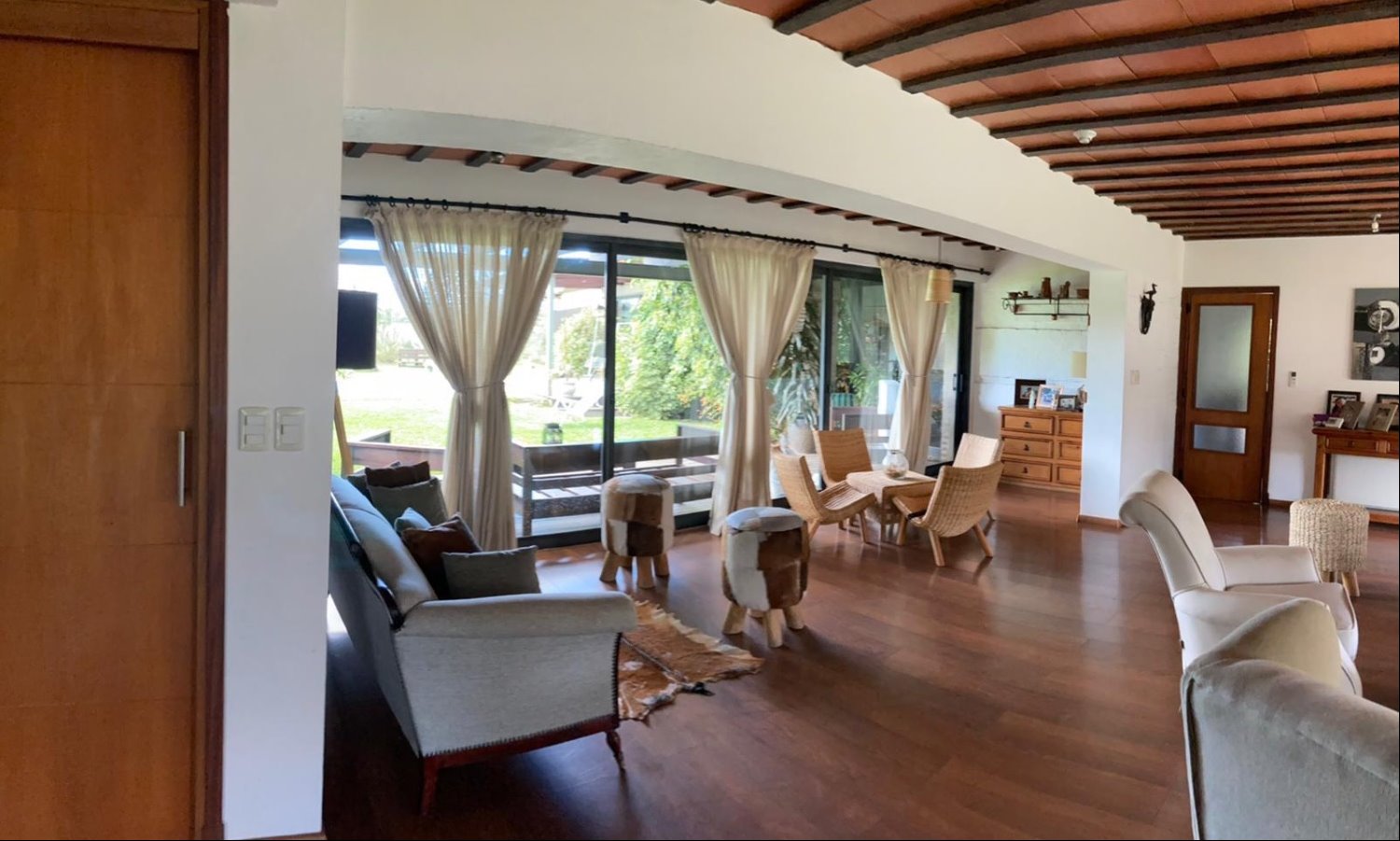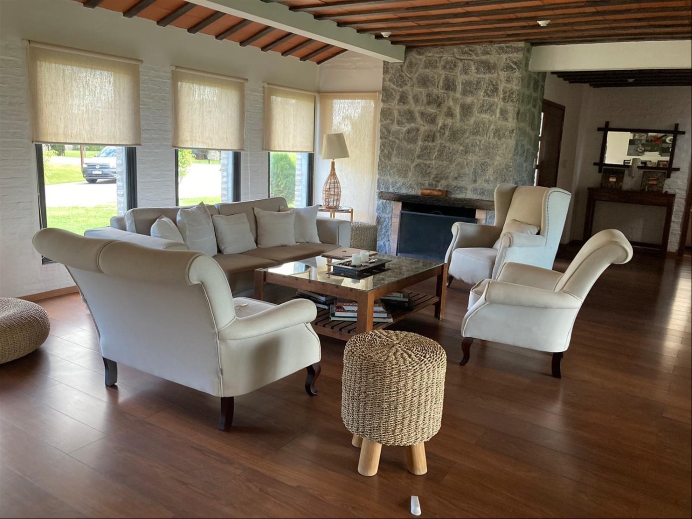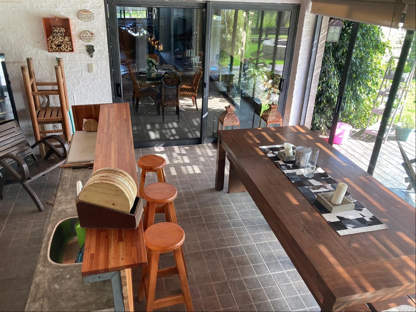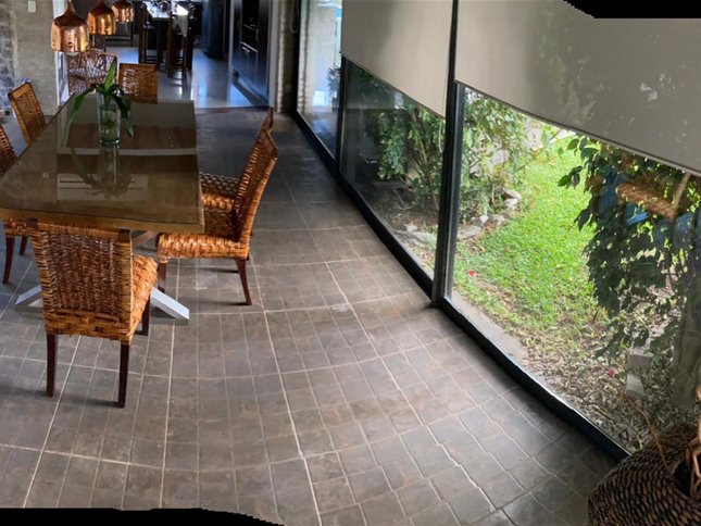 Amplia y muy luminosa. Living comedor con estufa a leña y grandes ventanales con vista al jardín. Baño social. Cocina integrada con muebles sobre y bajo mesada, y comedor diario. Lavadero. Servicio completo.