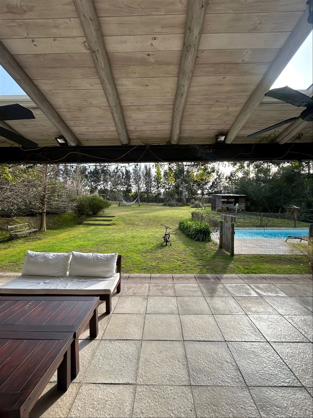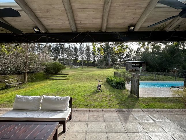 Exterior: gran galería con parrillero, piscina, huerta, tender, depósito y jardín consolidado.