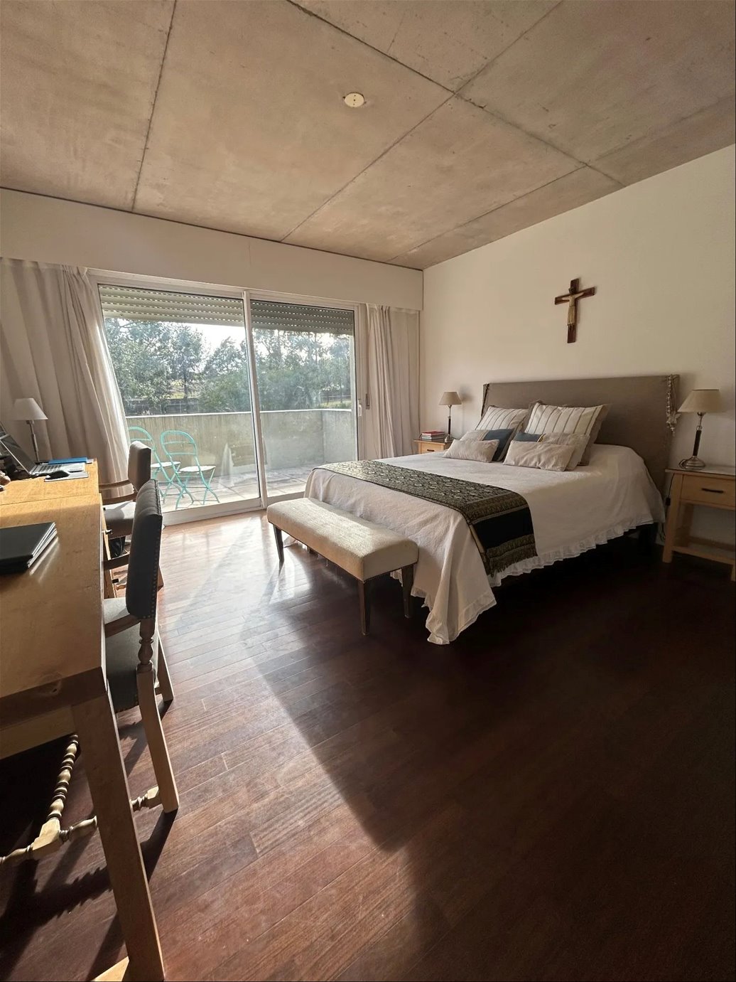 Planta alta: suite principal con vestidor, baño y balcón al jardín; dos dormitorios adicionales con baño completo.