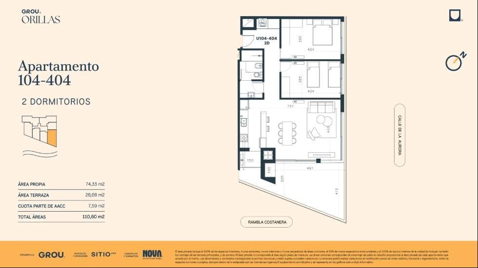 * Las superficies de los apartamentos incluyen muros divisorios hasta su eje, ductos, terrazas, balcones, prorrateo de área común, circulación vertical exclusivamente de planta.
