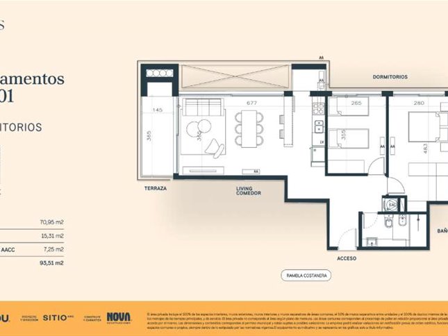 * Las superficies de los apartamentos incluyen muros divisorios hasta su eje, ductos, terrazas, balcones, prorrateo de área común, circulación vertical exclusivamente de planta.