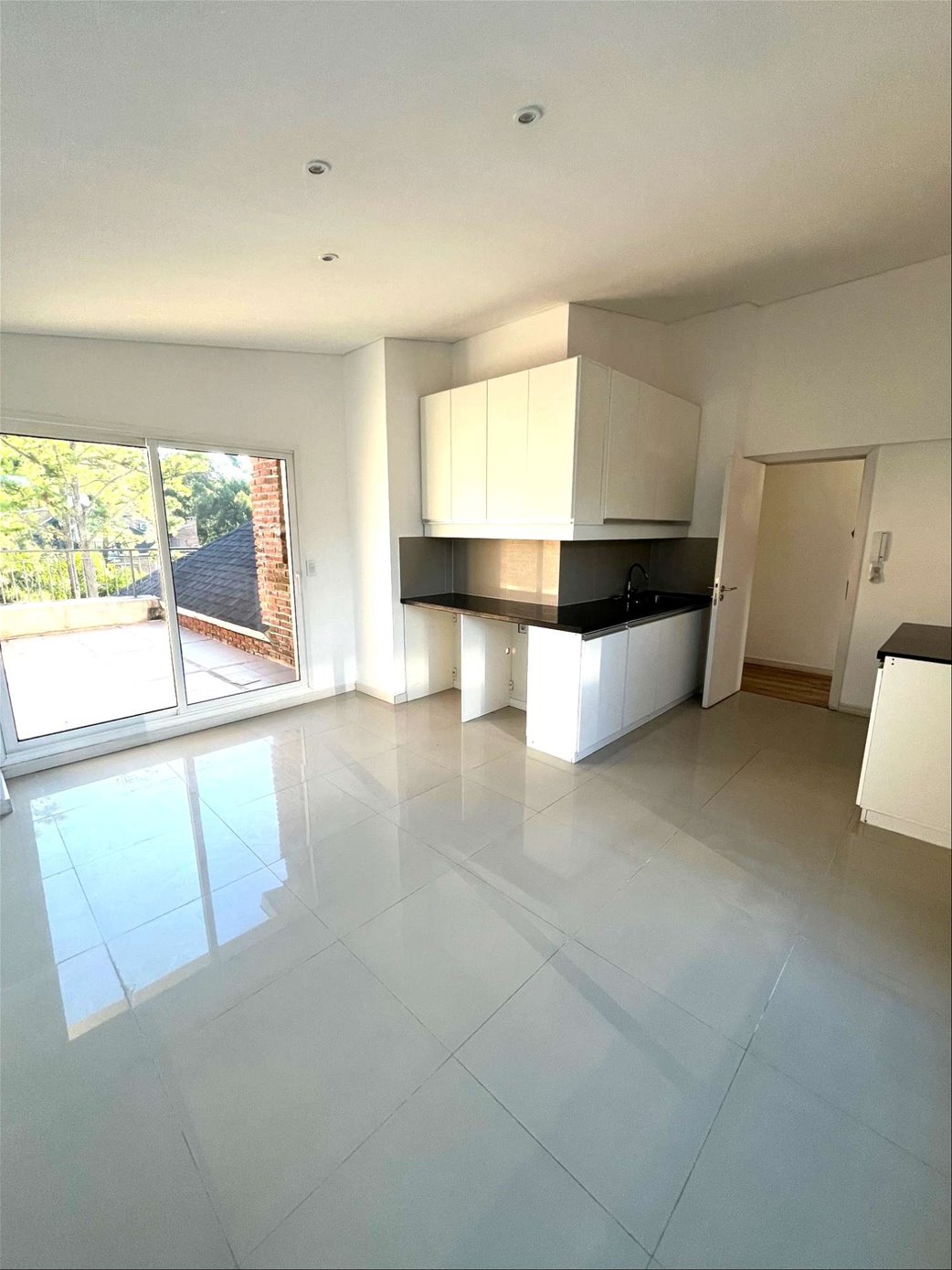 Living comedor amplio con salida a terrazas, cocina definida con desayunador, baño social, dormitorio principal en suite con salida a balcón, segundo dormitorio también en suite con salida a terraza. 3 terrazas grandes.