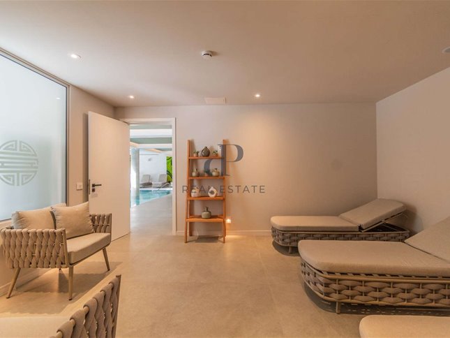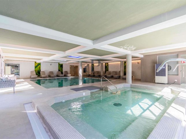 Piscinas interior y exterior, hidroterapia, sauna, masajes, gimnasio completo, salas de yoga y relax, juegos, dos barbacoas para 20 personas, vestuarios, sala de reuniones y consultorio médico.