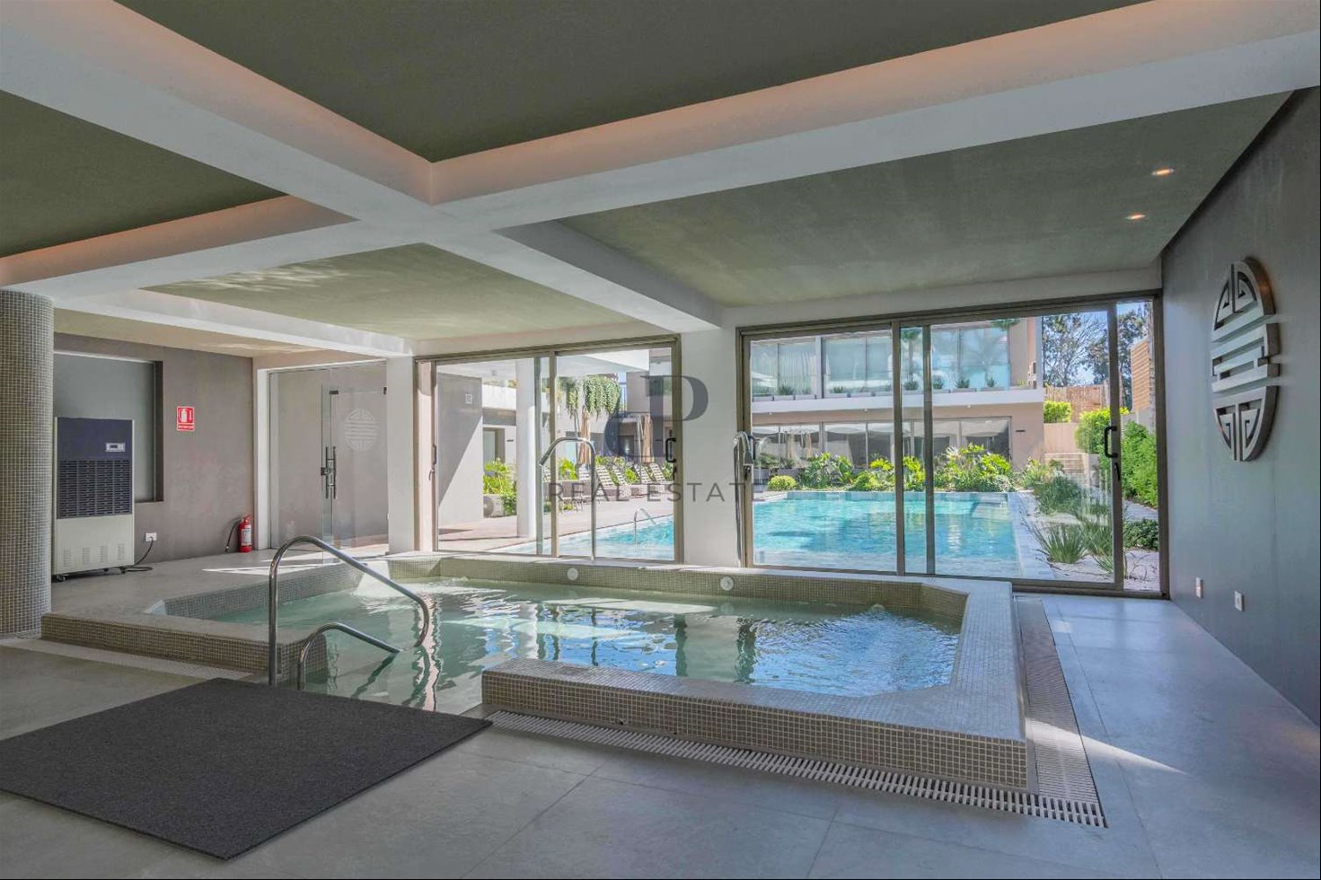 Piscinas interior y exterior, hidroterapia, sauna, masajes, gimnasio completo, salas de yoga y relax, juegos, dos barbacoas para 20 personas, vestuarios, sala de reuniones y consultorio médico.