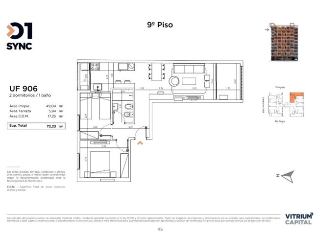 2 DORM1 BAÑO73 m² SUP.49 m² EDIF.1 Garaje