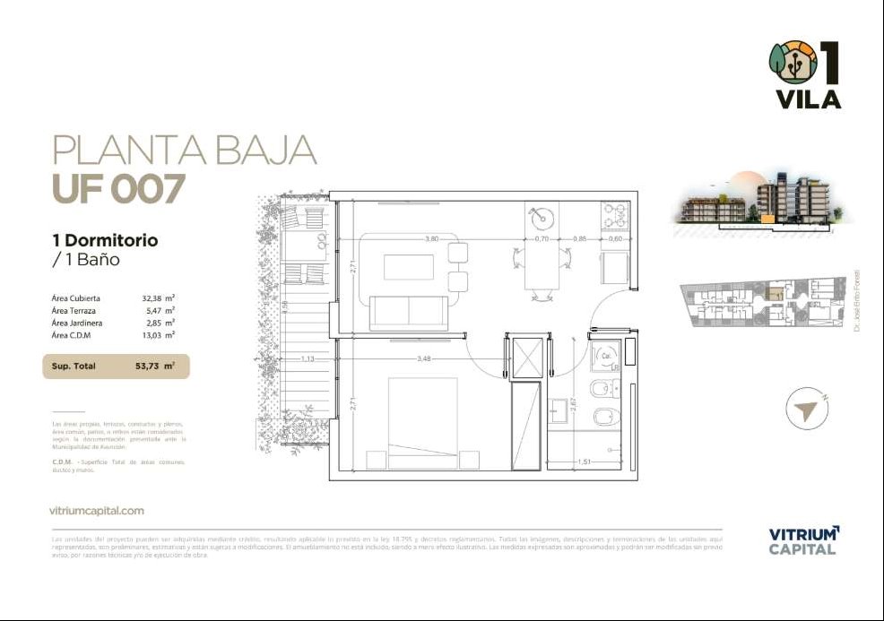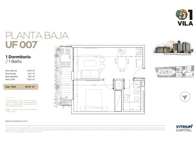 1 DORM1 BAÑO54 m² SUP.33 m² EDIF.1 Garaje